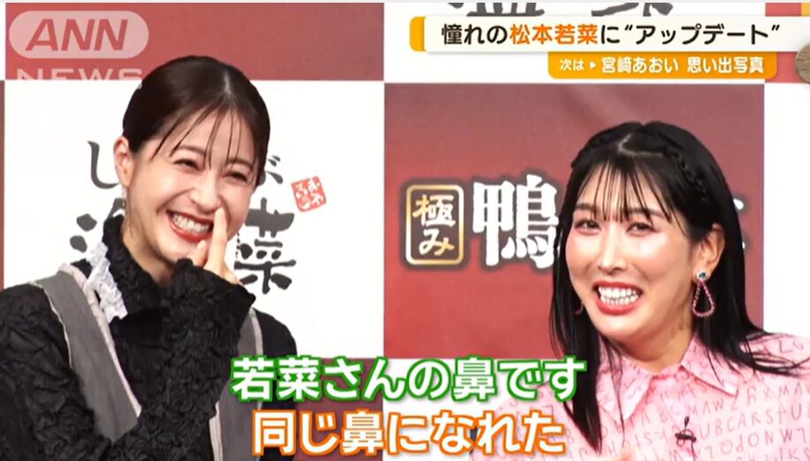 商品イベントで共演した際に松本若菜さんの鼻すじにアップデートしたと本人の前で、カミングアウトしていました。